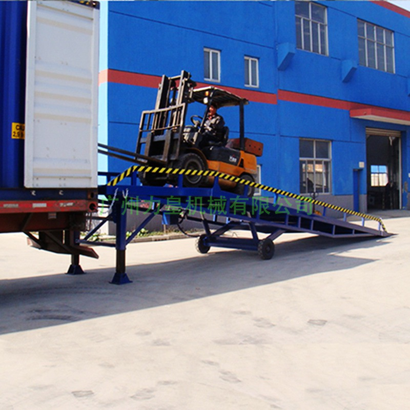 移動(dòng)式液壓登車橋移動(dòng)式液壓登車橋移動(dòng)式液壓登車橋移動(dòng)式液壓登車橋是與叉車配合使用的貨物裝卸輔助設(shè)備,可根據(jù)汽車車廂的高低調(diào)節(jié)高度,叉車可以直接通過本設(shè)備駛?cè)胲噹麅?nèi)部進(jìn)行貨物的批量裝卸,僅需單人作業(yè),即可實(shí)現(xiàn)貨物的快速裝卸。它使企業(yè)減少大量勞力,提高工作效率,獲取更大經(jīng)濟(jì)效益。